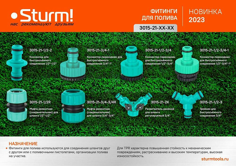Разветвитель двойной для шланга, регулируемый Sturm!
