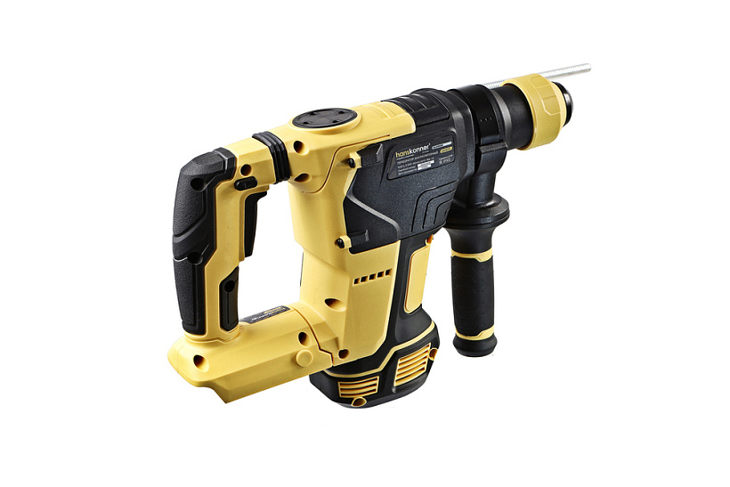 HRH1827BL Hanskonner серии PLATINUM – 18 В аккумуляторный перфоратор с патроном под оснастку SDS+ часть системы 1BatterySystem и совместим со всей линейкой инструмента данной системы. Подходит для сверления отверстий в бетоне, дереве и стали. Имеет 3 режима: сверление, сверление с ударом, долбление + режим предустановки долота.