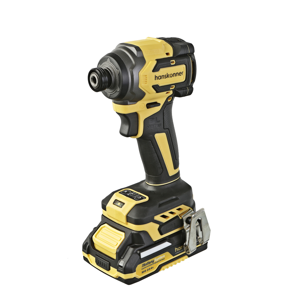Hanskonner HCD1230R – универсальный аккумуляторный 12В двухскоростной шуруповерт. Модель обладает максимально сбалансированной компоновкой: небольшая толщина корпуса и рукояти позволяет эффективное использование в условиях с затрудненным доступом, а нейтральный центр тяжести, и обилие прорезиненных противоскользящих поверхностей способствуют надежному хвату, и лучшему контролю в процессе работы. Шуруповерт оснащен 12 В бесщеточным двигателем, характеризующимся на 30% лучшей производительностью в сравнении с коллекторными аналогами. Кроме того, бесщеточный двигатель отлично справляется с кратковременными перегрузками и не склонен к перегреву. Модель имеет две скорости: режим пониженных оборотов (0–400 об/мин) предназначен для работ с крепежом, режим повышенных оборотов (0–1300 об/мин) – для сверления отверстий в различных материалах. Наличие 20-ти ступенчатой муфты регулировки усилия позволяет производить максимально гибкую настройку необходимого момента затяжки. Предусмотрена функция блокировки вала, способствующая удобству смены оснастки одной рукой. К особенностям Hanskonner HCD1230R относятся эффективная LED-подсветка рабочей зоны, а также индикатор остаточного заряда аккумулятора PowerCheck. Дополнительному комфорту использования способствуют специальная зацепная скоба крепления на пояс, а также страховочный ремешок на руку. Шуруповерт штатно комплектуется парой литий-ионных (Li-ion) аккумуляторов, зарядным устройством с функцией быстрой зарядки (0–100%–50 мин), двухсторонними битами. Прочный пластиковый кейс гарантирует сохранность устройства и аксессуаров в процессе транспортировки.