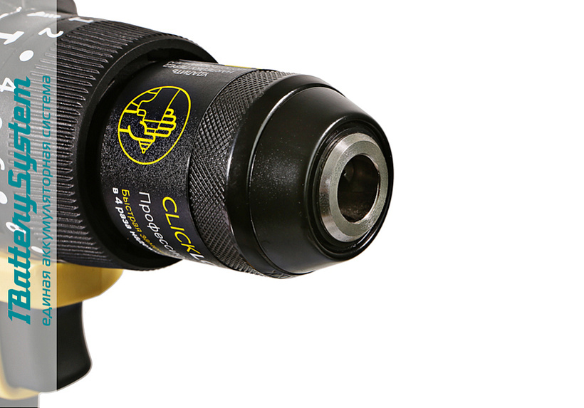 Усиленный цельнометаллический патрон с диаметром захвата 13 мм расширяет набор применения оснастки для выполнения работ с повышенной нагрузкой. Максимальный диаметр сверления в cтали/дереве/бетоне/льде — 13/40/13/200 мм. Фальш-кольцо защищает патрон от повреждений в узких, труднодоступных местах.