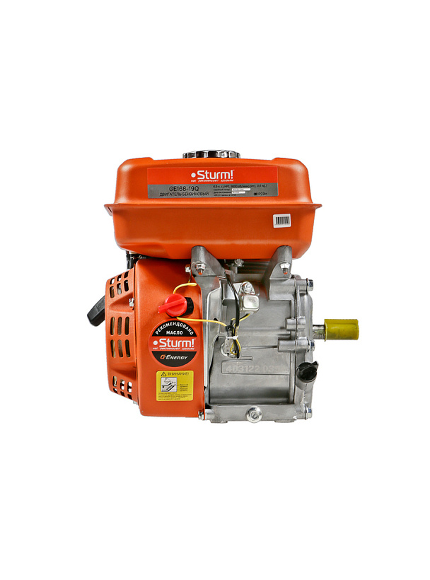 Бензиновый двигатель Sturm! GE168-19Q используется для установки на культиваторы, мотопомпы, снегоуборщики, скарификаторы и т.п