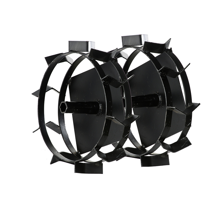 Грунтозацепы 340 мм S23 шестигранный вал Sturm! GKE-24-340 используются в качестве замены резиновых колес и обеспечивают сцепление с грунтом при работе мотоблока. Колеса выполнены в виде нескольких полос металла со вваренными в середину листами металла.