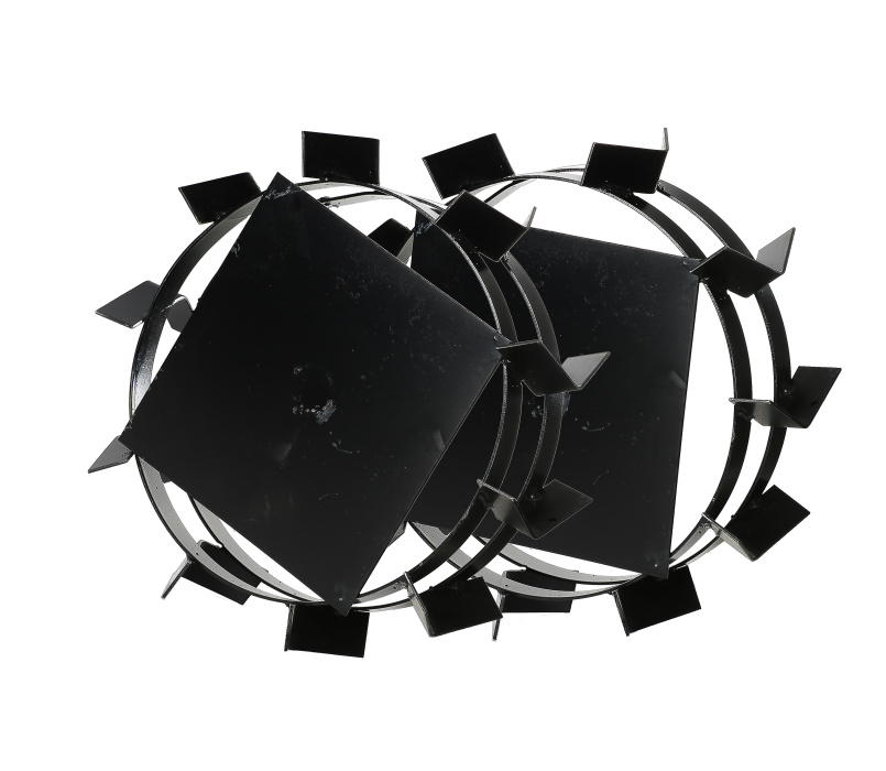 Грунтозацепы используются в качестве замены резиновых колес и обеспечивают сцепление с грунтом при работе мотоблока. Колеса выполнены в виде нескольких полос металла со вваренными в середину листами металла. На такие колеса почва не налипает, выдавливаясь в пустоты между лентами. В результате сцепление с грунтом будет выше. Диаметр ступицы S24 (шестигранная) мм, диаметр грунтозацепа 430 мм, ширина 130, количество ободов 2.