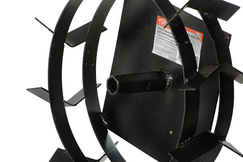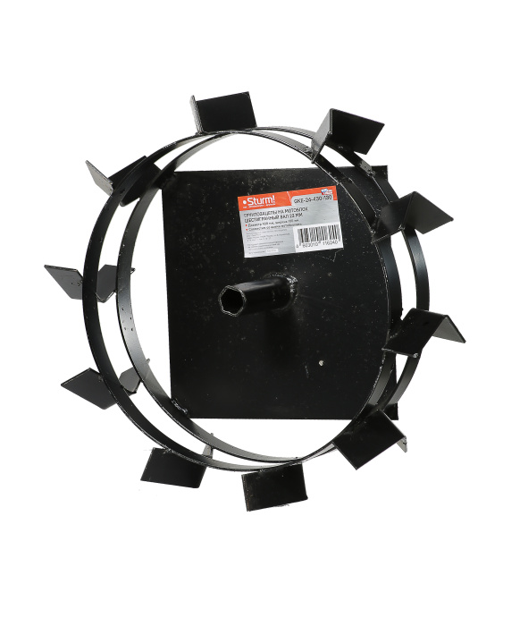 Грунтозацепы 430 мм S23 шестигранный вал Sturm! GKE-24-430 используются в качестве замены резиновых колес и обеспечивают сцепление с грунтом при работе мотоблока. Колеса выполнены в виде нескольких полос металла со вваренными в середину листами металла.
