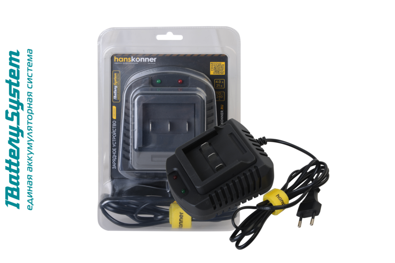 Зарядное устройство Hanskonner HBC2004 является частью единой аккумуляторной системы 1BatterySystem и совместимо со всей линейкой аккумуляторов этой системы.
