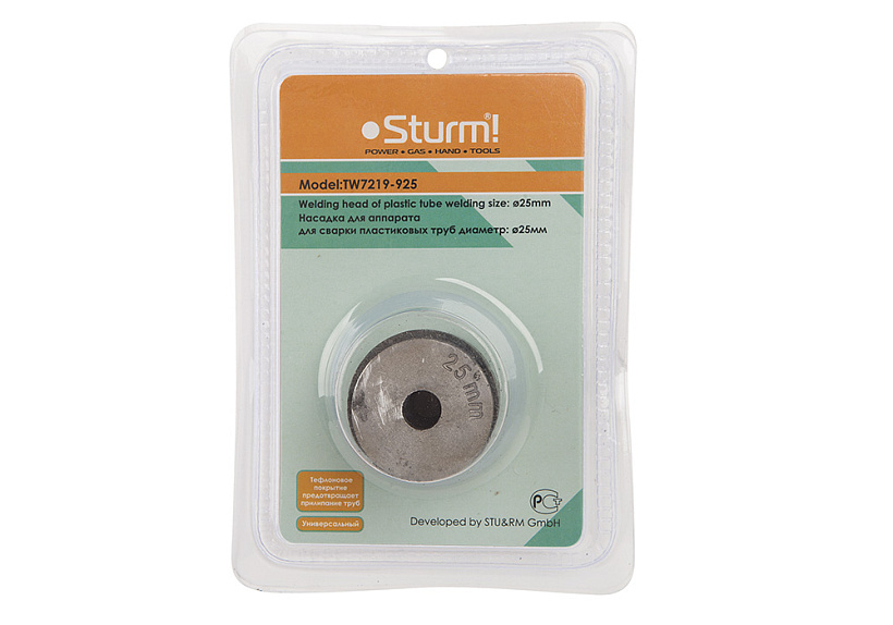 Насадки для аппарата сварки пластиковых труб Sturm! TW7219-925 предназначена для сварки пластиковых труб диаметром 25 мм. Специальное тефлоновое покрытие помогает избежать прилипания труб. Насадка является универсальной и подходит для большинства аппаратов.