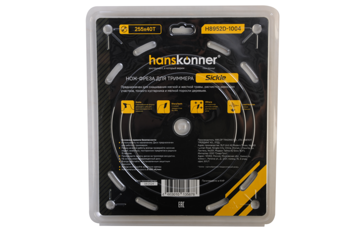 Фреза для бензотрим., Sickle 255мм x 25,4x40, с тверд. Напайк., Hanskonner