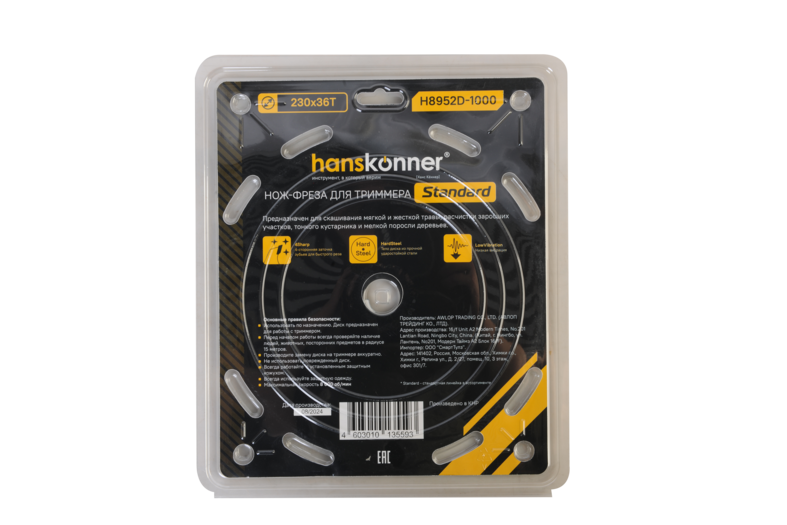 Фреза для бензотрим., Standard 230мм x 25,4x36, с тверд. Напайк., Hanskonner