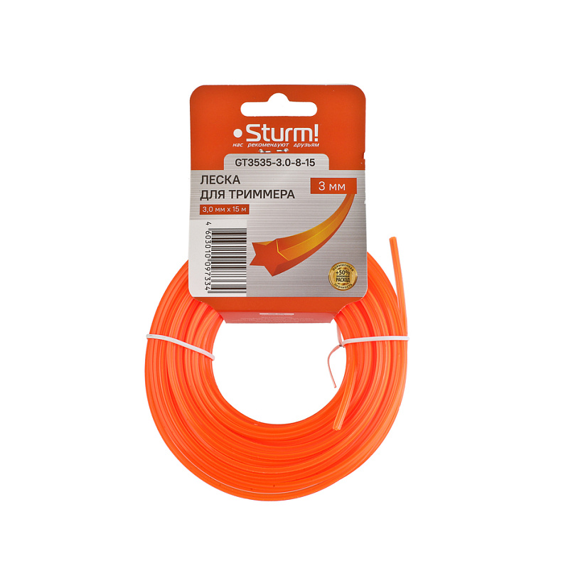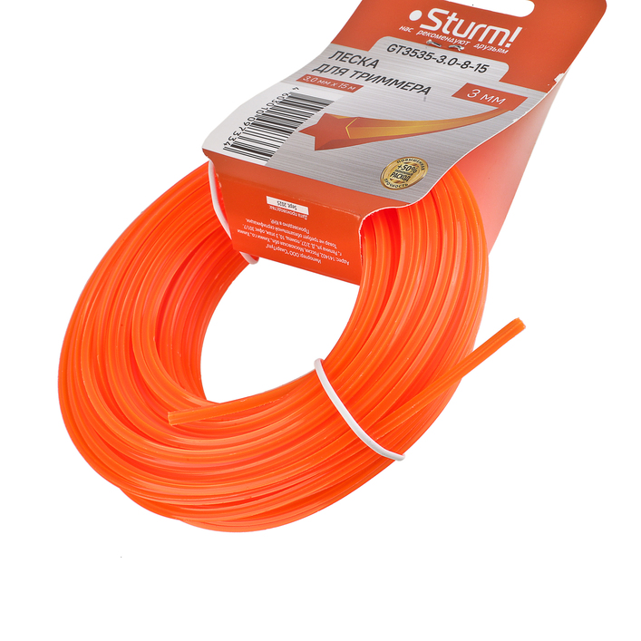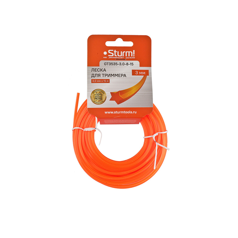 Леска для триммера, d=3.0 мм, l=15 м, ЗВЕЗДА, оранж. КАРТОН. Sturm!