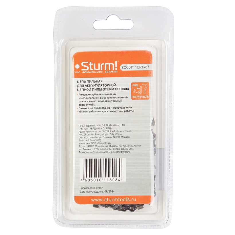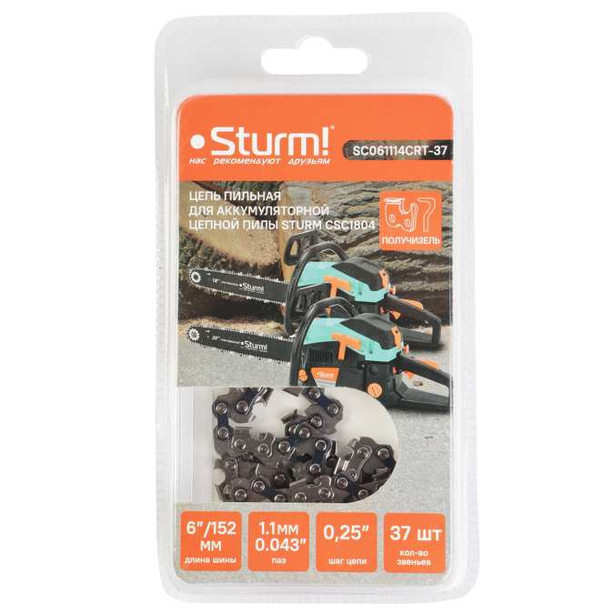 Цепь 37 звеньев, паз 1,1, шаг 1/4, Sturm! Для CSC1804