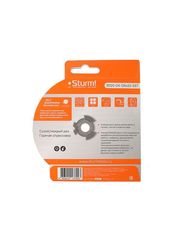 Алмазный диск 125x22,23 Ультратонкий 1,1 мм, ЭКСПЕРТ по кафелю, Sturm!