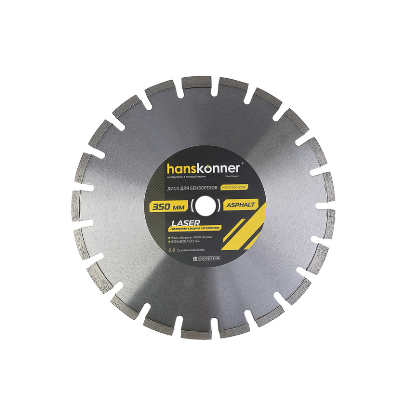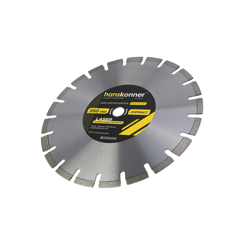 Алмазный диск 350x25,4 LASER ASPHALT, для бензорезов, Hanskonner