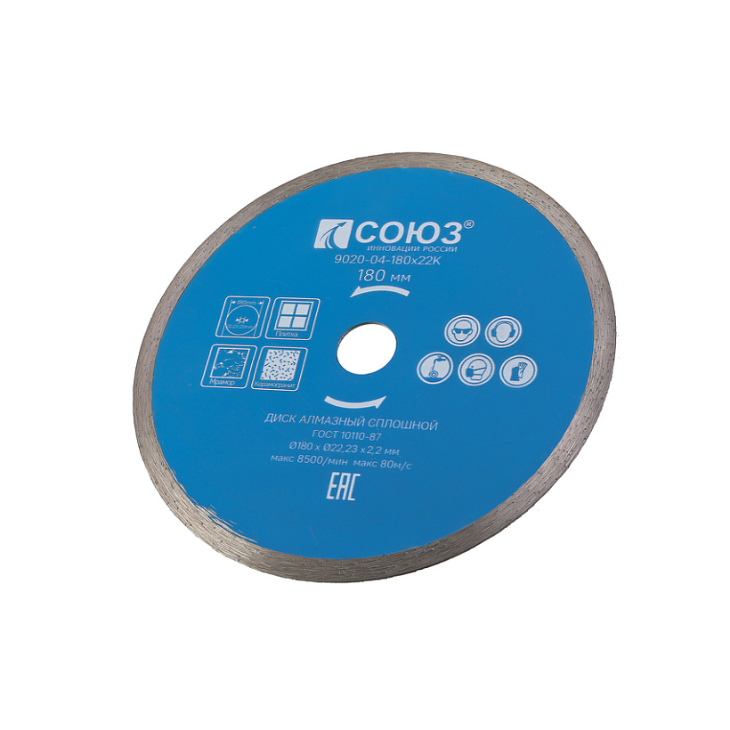 Алмазный диск со сплошным алмазным слоем, 180х22,2, Союз