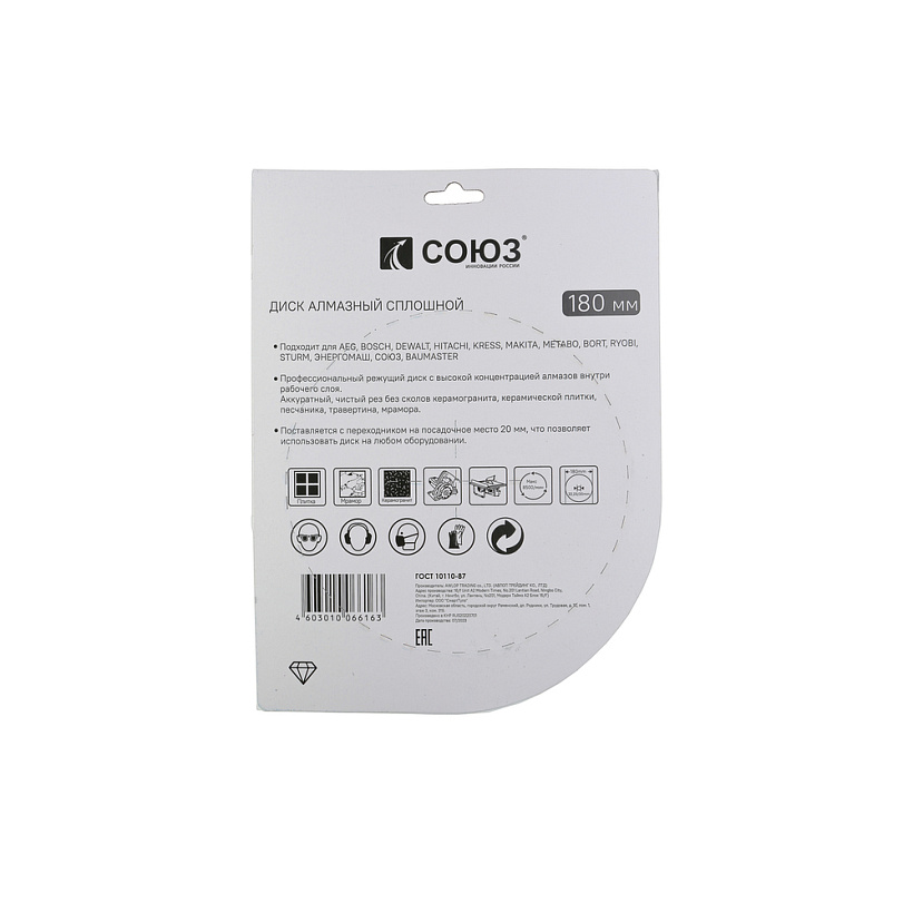 Диск алмазный СОЮЗ 9020-04-180x22К