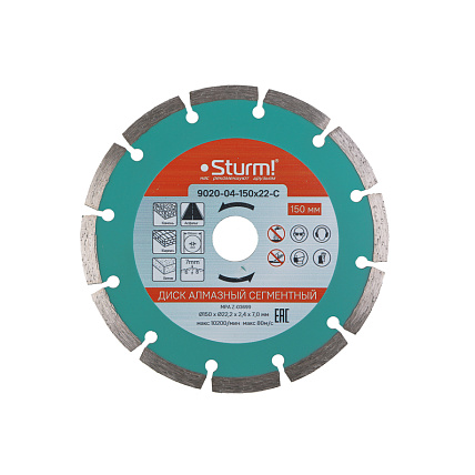 - Диск алмазный Sturm! 9020-04-150x22-C сегментного типа для резки различных материалов: камня, кирпича, бетона, асфальта и тротуарной плитки.