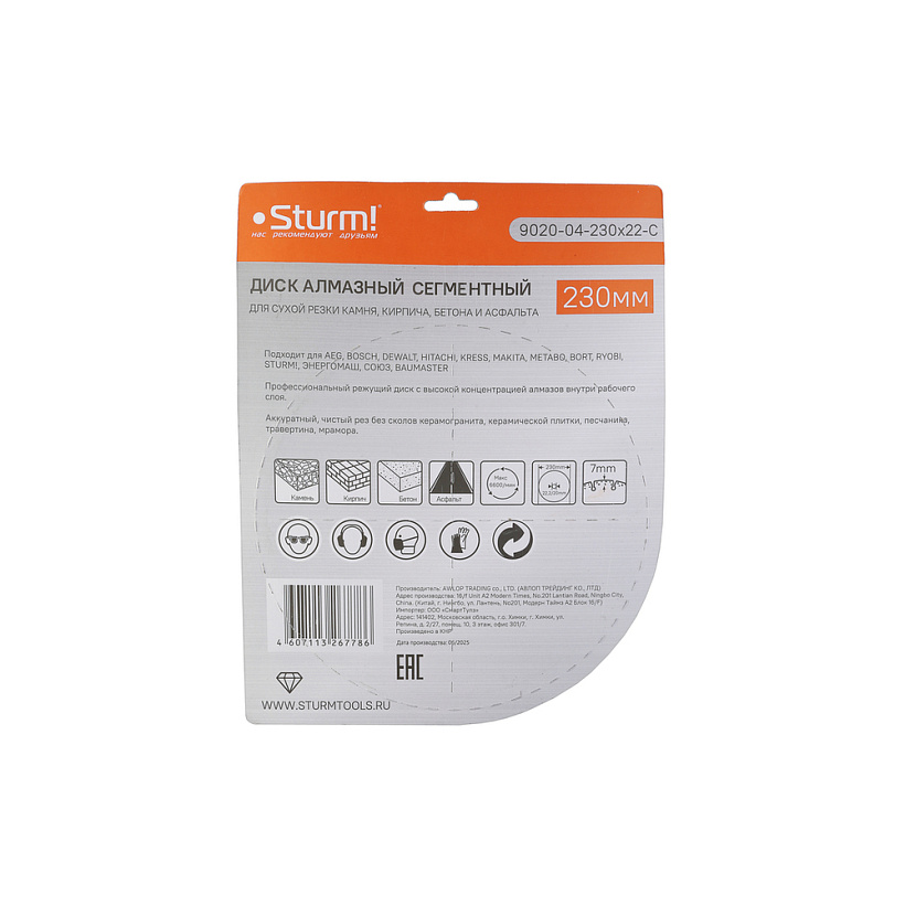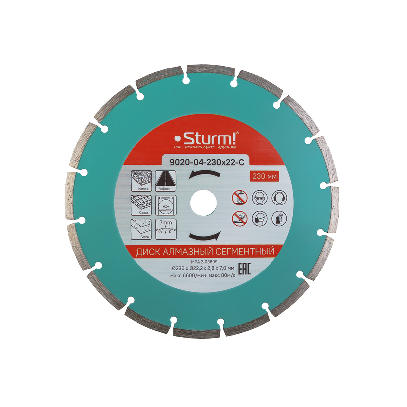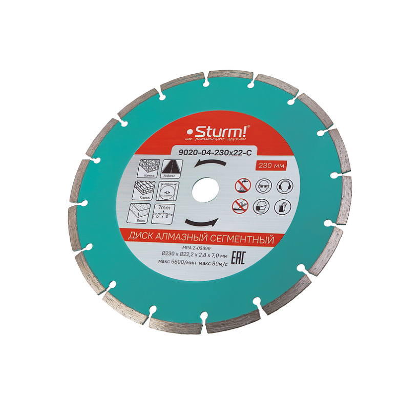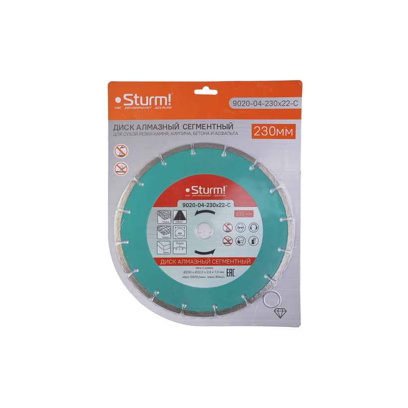 Алмазный диск, сухая резка, сегментный 230мм Sturm!