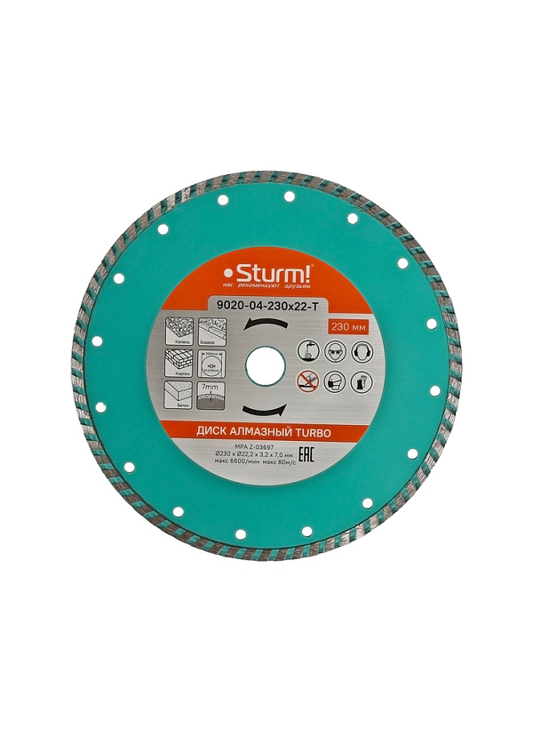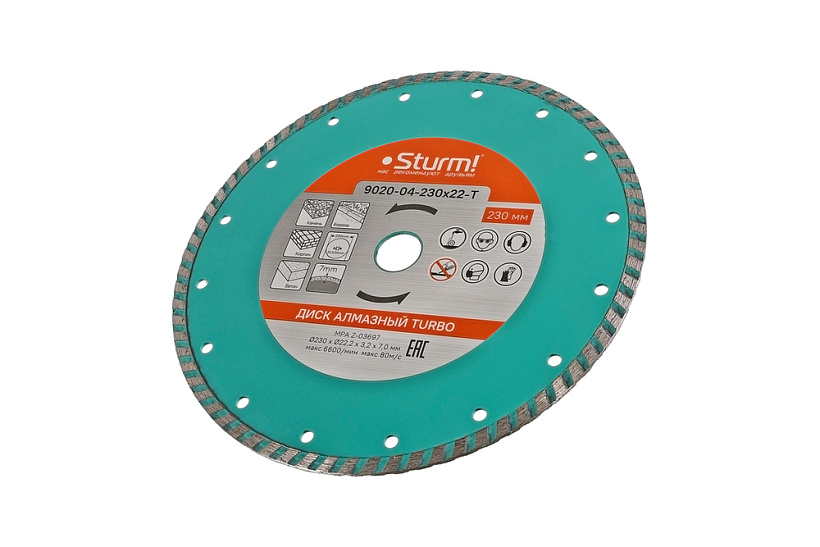 Алмазный диск, сухая резка, "Турбо" 230мм Sturm!
