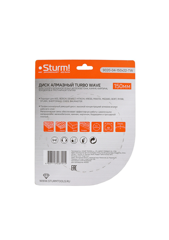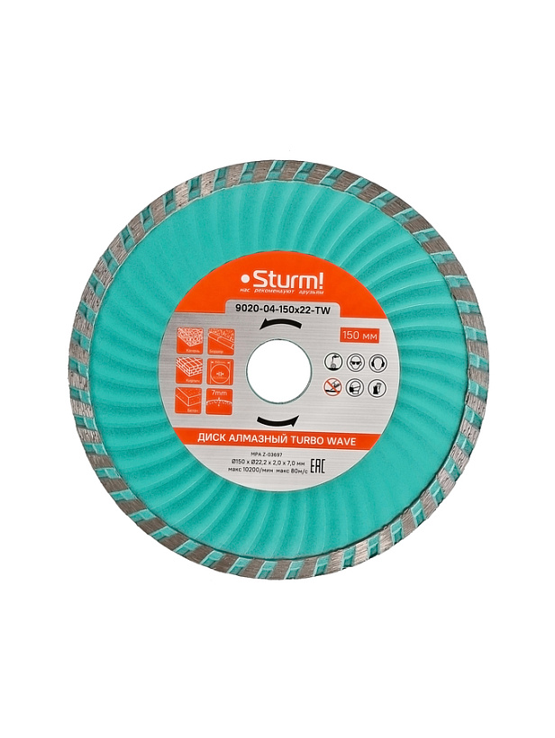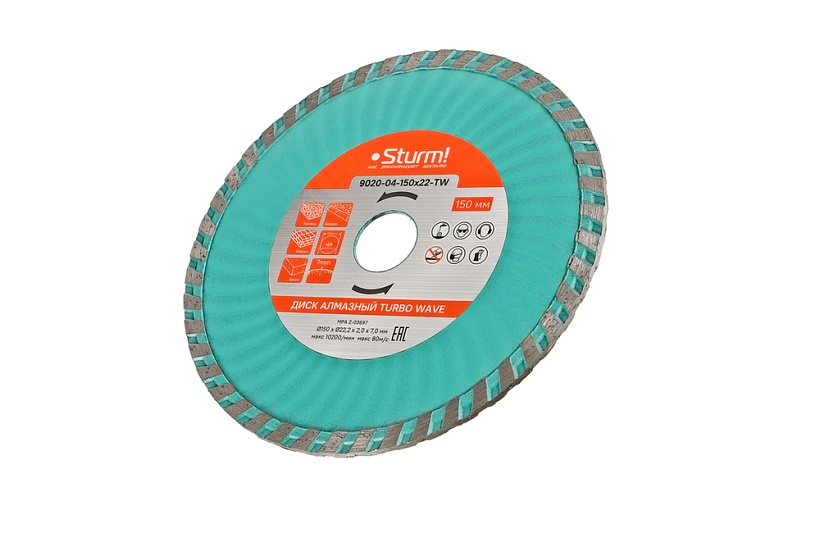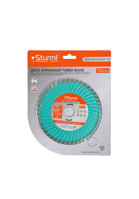 Алмазный диск, сухая/влажная резка Turbo Wave 150мм Sturm!