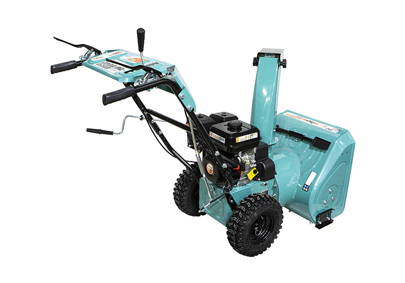 Зазубренный шнек первой ступени успешно измельчает слежавшийся снег и может справиться даже с настом толщиной до 2 см. Высокооборотистая вторая ступень снегоуборочного агрегата отбрасывает снег на расстояние до 12 м. Широкие колеса с развитым анти-снежным протектором позволяют уверенно двигаться по рыхлому снегу.