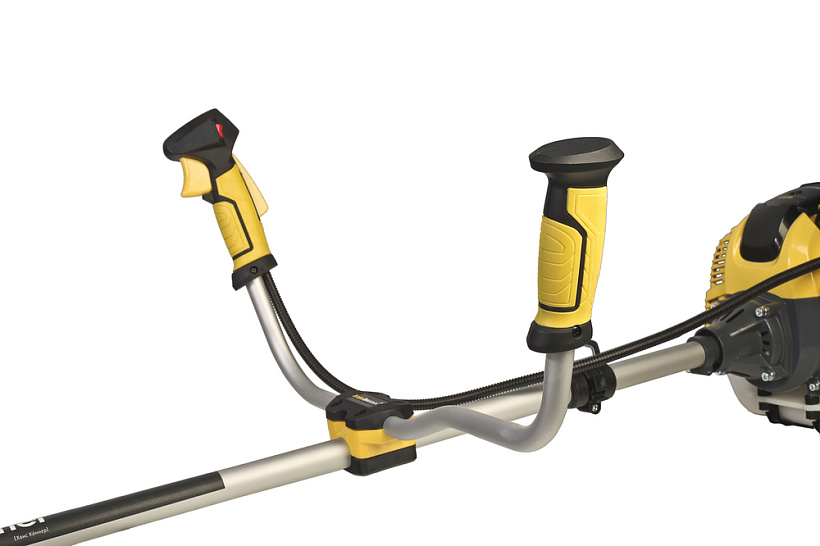 Имеет эргономичный ранцевый ремень, который позволяет равномерно распределить нагрузку сразу на оба плеча пользователя, что обеспечивает комфортное состояние при длительной работе с триммером.