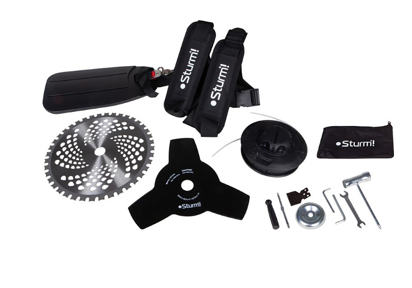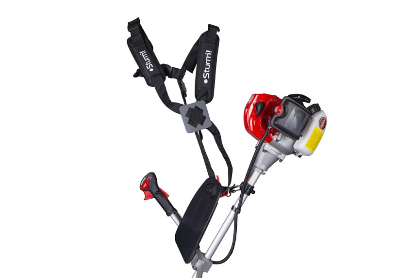 Sturm BT8942D – универсальная бензиновая коса для обработки дачных участков, приусадебных и садовых территорий Модель оснащена экономичным бензиновым двухтактным двигателем рабочим объемом 42,7 см³ и мощностью 1.25 кВт / 1.7 л. с., прямой неразъемной усиленной штангой с высокопрочным валом внутри и мощным редуктором, благодаря чему способна выполнять различные задачи: инструмент уверенно справляется не только со скашиванием мягкой и жесткой переросшей травы, но и эффективен при работе с зарослями кустарника, при условии установки соответствующей оснастки, а также может использоваться в тандеме с культиваторными насадками для обработки почвы. Модель проста и максимально удобна в эксплуатации – снабжена Т образной рукоятью «велосипедного типа» – она обеспечивает лучший контроль и позволяет при работе захватывать большую площадь за один заход. Легкость запуска инструмента гарантируют механизм облегченного старта с дополнительной пружиной и праймер. В расширенную штатную комплектацию Sturm BT8942D помимо режущей оснастки (полуавтоматическая катушка с нейлоновой леской, металлический трехлопастной нож, 80-ти зубая фреза) включен ранцевый ременной подвес с защитным набедренником, способствующий снижению нагрузки на позвоночник оператора, за счет ее равномерного распределения.