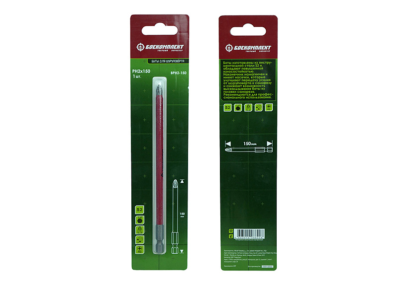 Биты PH2x150мм, сталь S2, 1шт, БОЕКОМПЛЕКТ