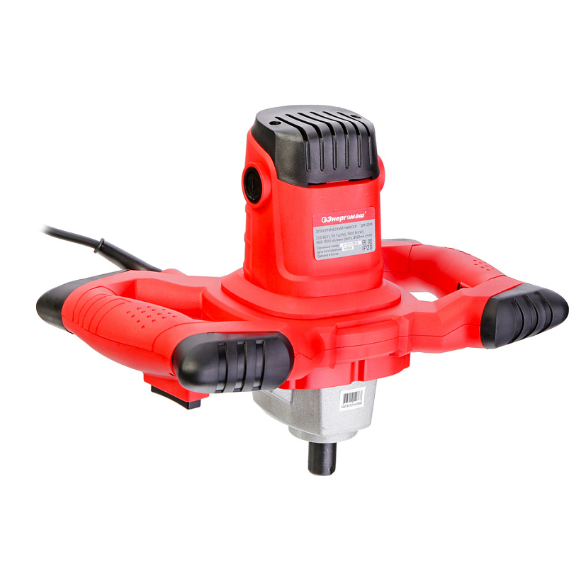 Электрический миксер Энергомаш ДМ-2016 — мощный и удобный электроинструмент для продуктивного перемешивания растворов и смесей любого типа: краски, грунтовки, сухой стяжки и цементные растворы с добавлением каменной крошки.