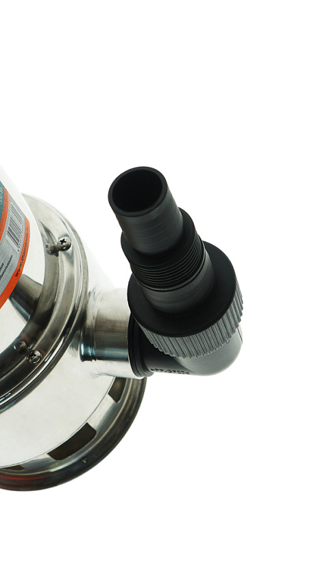 Универсальный фитинг в комплекте позволит использовать с насосом шланги и трубы различных диаметров.