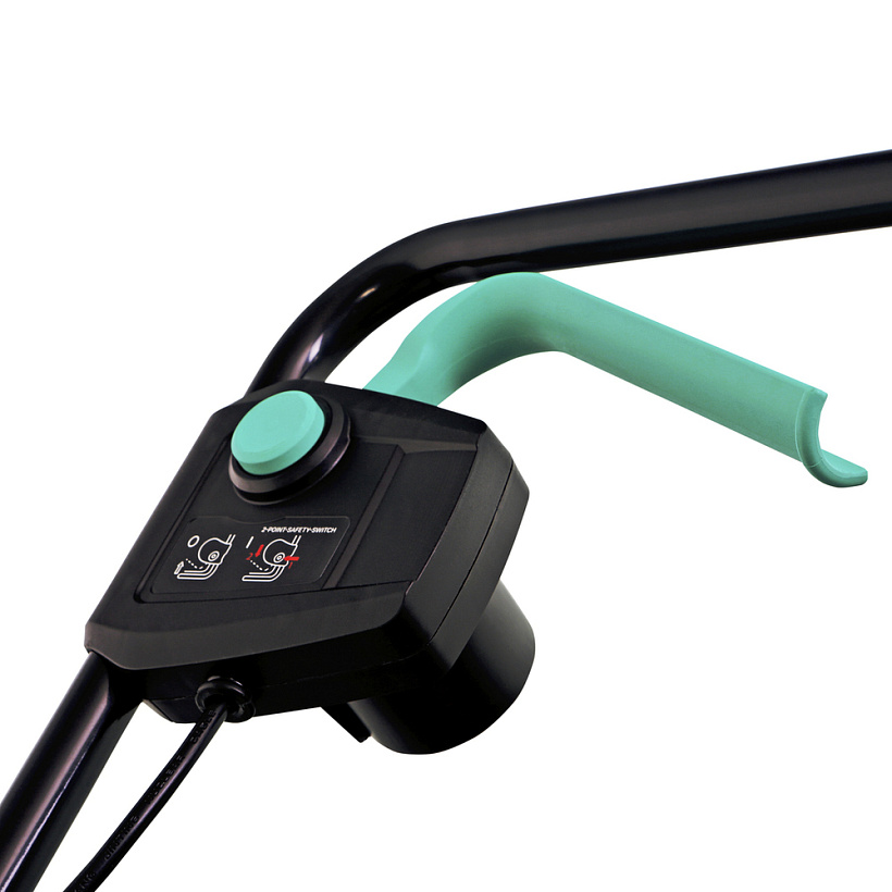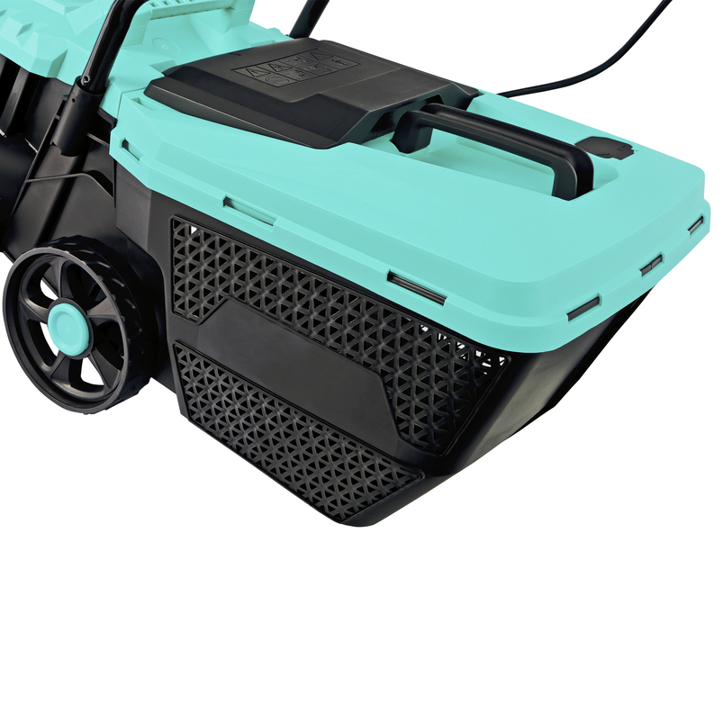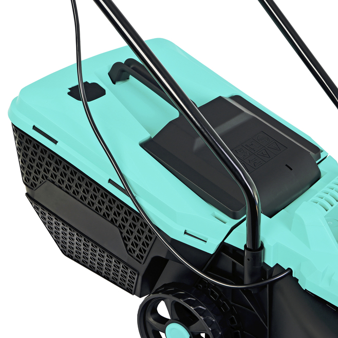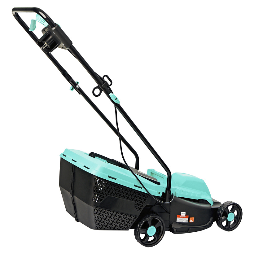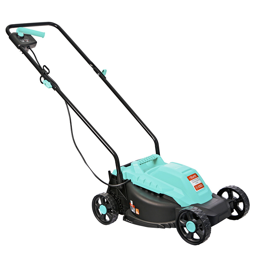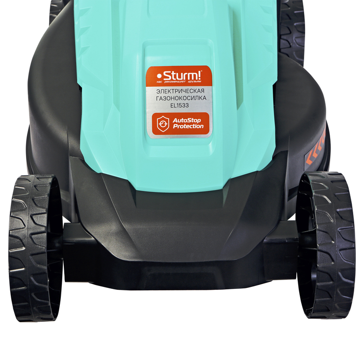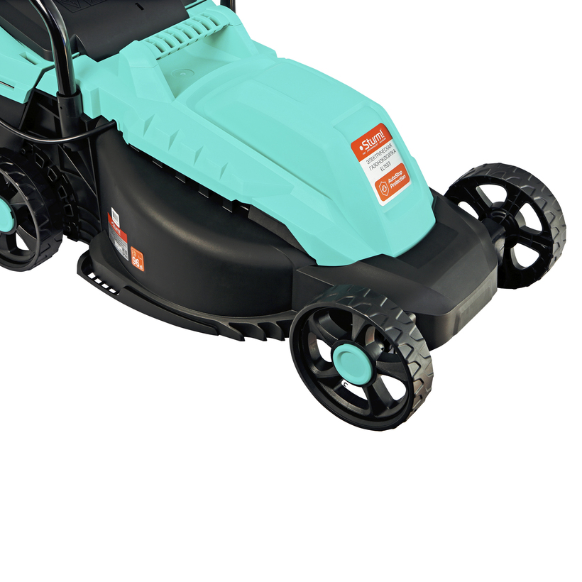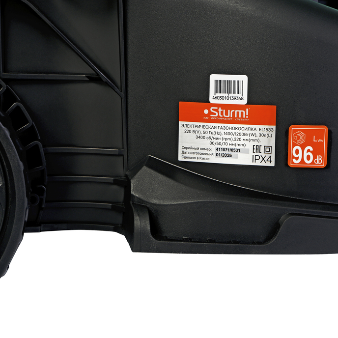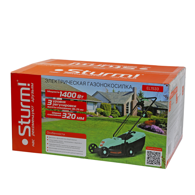 Sturm EL1533 – легкая и маневренная электрическая газонокосилка для бытового использования. Предназначена для скашивания травы на участках небольшой площади. В отличие от ручных кос и триммеров, газонокосилка гарантирует значительно более точный и равномерный срез, что придает газону эстетически привлекательный вид. Модель Sturm EL1533 обладает небольшими массогабаритными показателями, что положительно сказывается на удобстве хранения, а также перемещении устройства в процессе работы. Оснащена производительным 1400 Вт электродвигателем, позволяющим уверенно справляться с различными типами травы, включая густую и высокую. Благодаря ременному приводу достигается низкий уровень шума при работе, а также более эффективно гасятся вибрации, передаваемые от двигателя к режущему механизму. Ширина скашивания за один проход составляет 320 мм. На инструменте предусмотрены три положения регулировки высоты скашивания – в зависимости от состояния газона и личных предпочтений пользователь выбирает нужное значение: 30/50/70 мм. Для исключения непреднамеренного запуска устройства пусковая кнопка имеет защиту от случайного включения. Фиксация рукояти производится с помощью удобных барашковых зажимов, что дает возможность легко, с минимальными усилиями, подготовить газонокосилку к работе без необходимости применения вспомогательного инструмента. В штатную комплектацию Sturm EL1533 входит травосборник из ударопрочного пластика объемом 30 литров. Удобству транспортировки способствует наличие переносной рукоятки на корпусе.