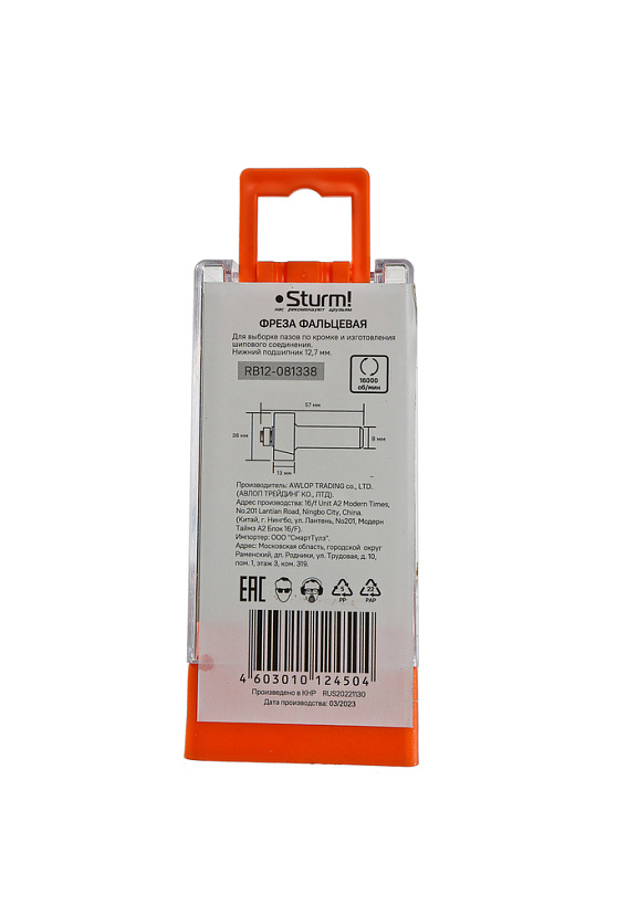 Фреза фальцевая с подшипником dxhxl 38x13x57 мм, хв.8 Sturm!