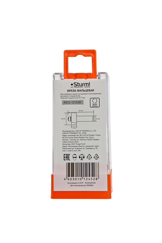 Фреза фальцевая с подшипником dxhxl 38x13x60 мм, хв.12 Sturm!