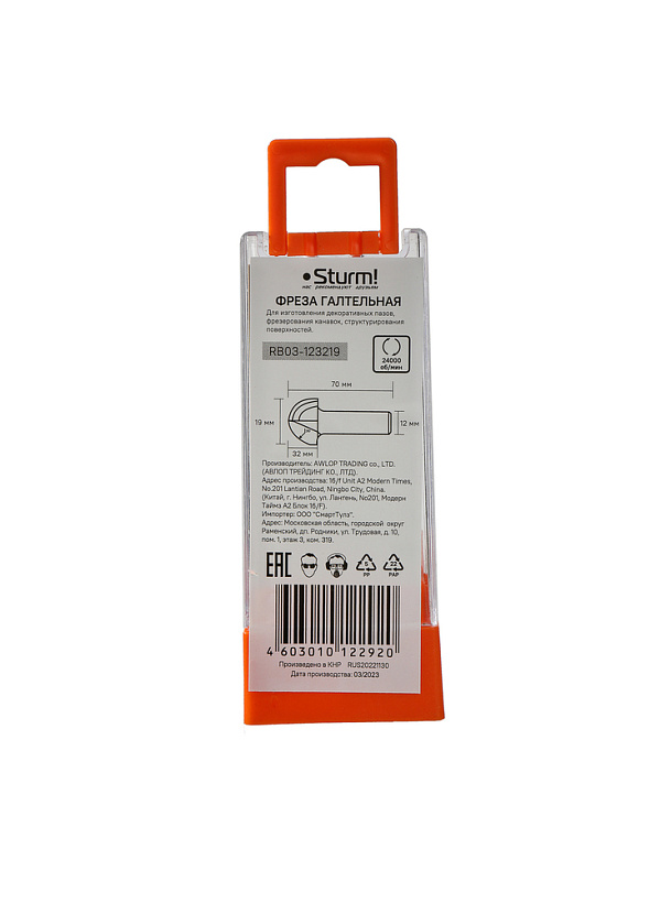 Фреза пазовая галтельная dxhxl 19x32x70 мм, хв.12 Sturm!