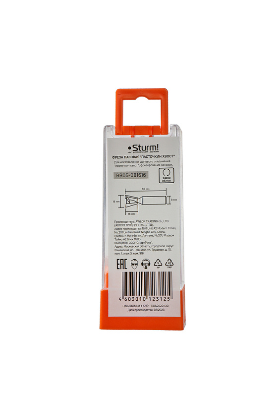 Фреза пазовая "ласточкин хвост" dxhxl 16x16x56 мм, хв.8 Sturm!