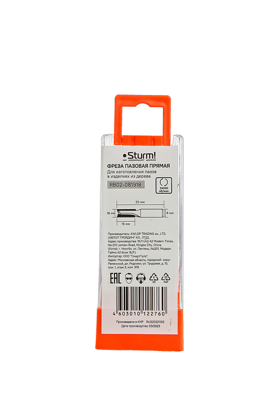 Фреза пазовая прямая с двойным лезвием dxhxl 18x19x55 мм, хв.8 Sturm!
