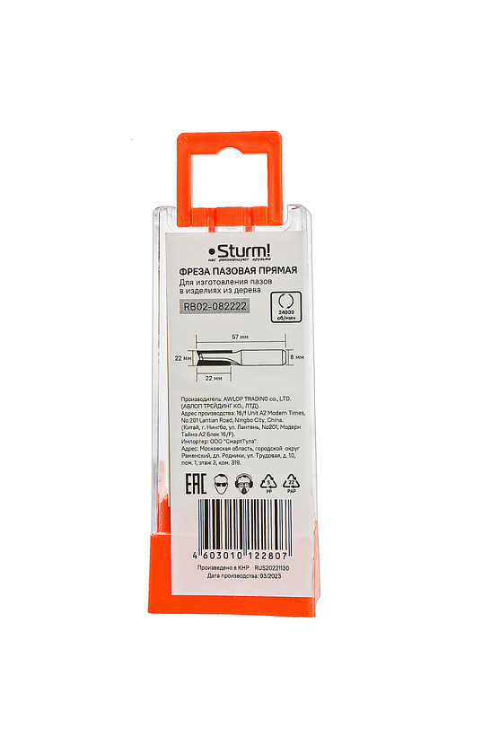 Фреза пазовая прямая с двойным лезвием dxhxl 22x22x57 мм, хв.8 Sturm!