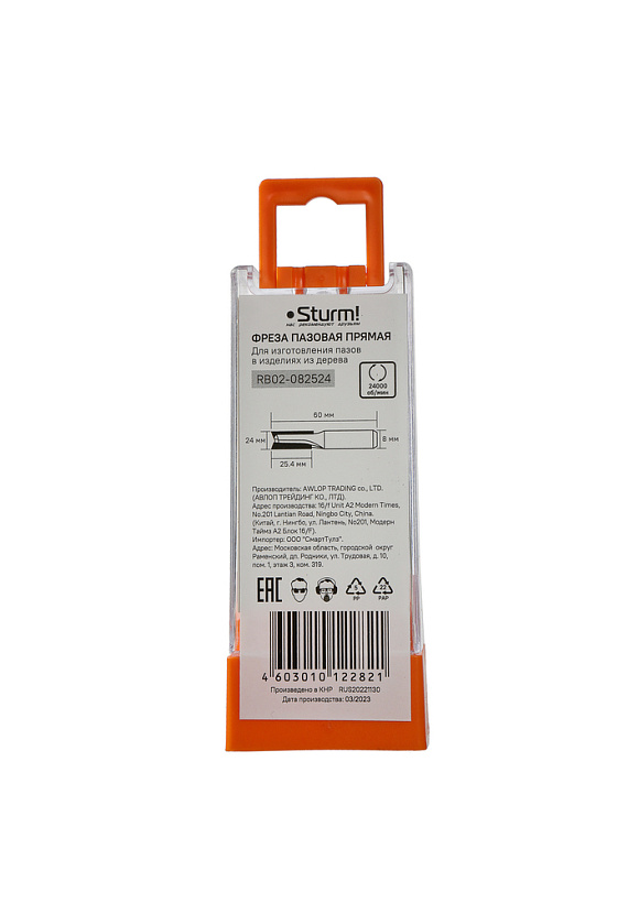 Фреза пазовая прямая с двойным лезвием dxhxl 24x25,4x60 мм, хв.8 Sturm!