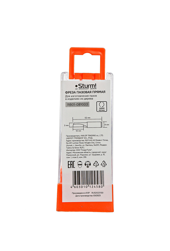 Фреза пазовая прямая с одним лезвием dxhxl 3x10x52 мм, хв.8 Sturm!