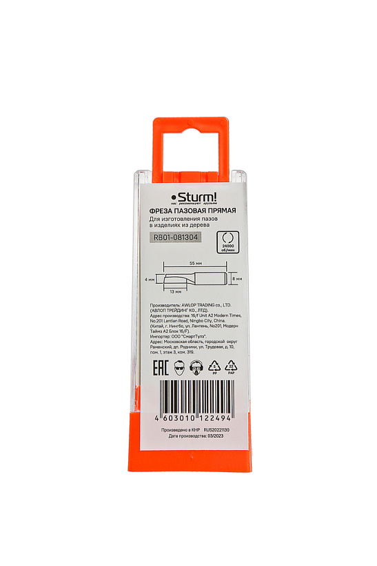 Фреза пазовая прямая с одним лезвием dxhxl 4x13x55 мм, хв.8 Sturm!