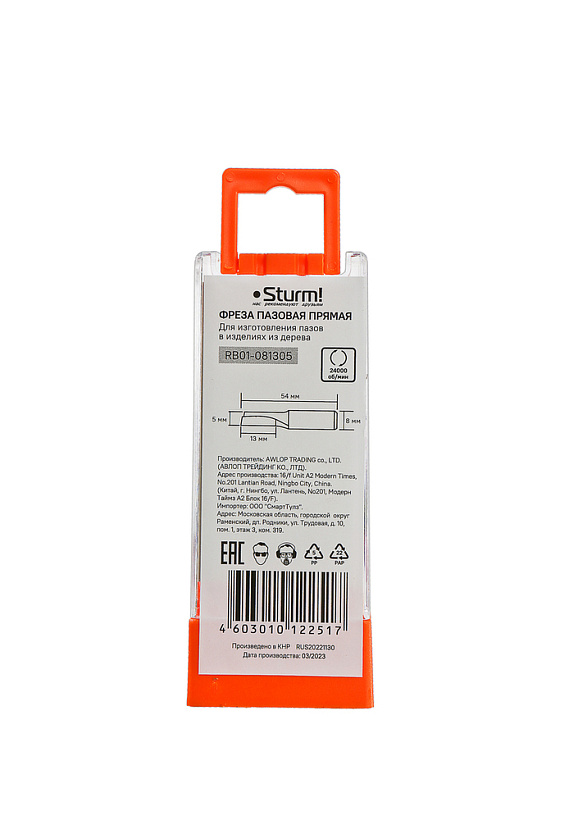 Фреза пазовая прямая с одним лезвием dxhxl 5x13x54 мм хв.8 Sturm!