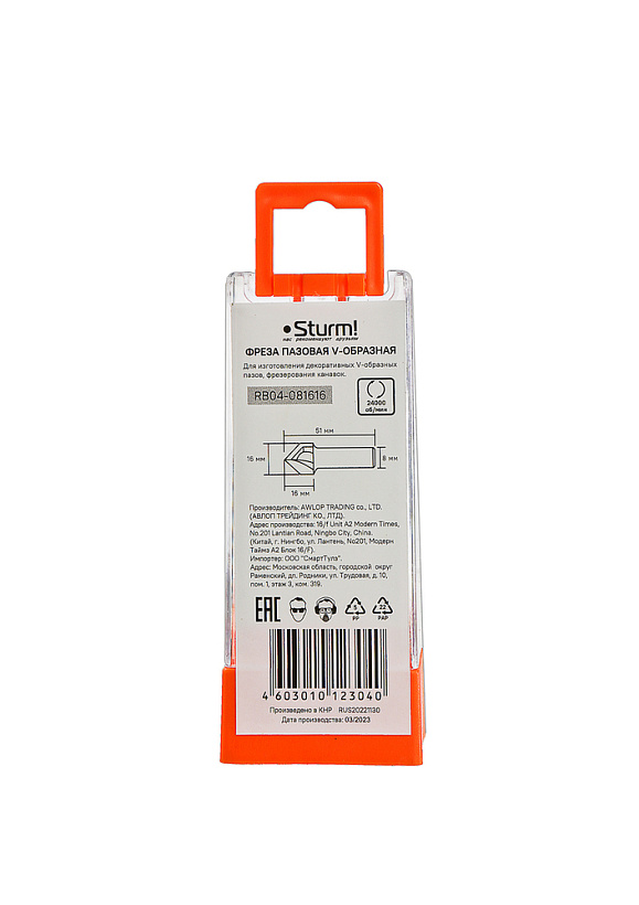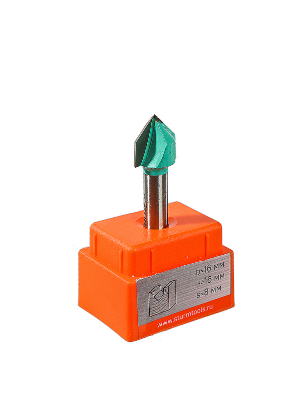 Фреза пазовая V-образная dxhxl 16x16x51 мм, хв.8 Sturm!