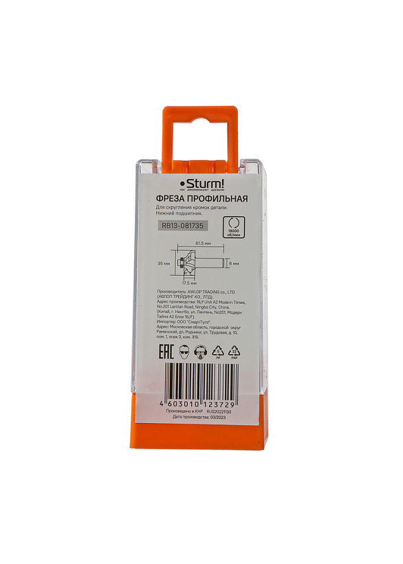 Фреза профильная с подшипником dxhxl 35x17,5x61,5 мм, хв.8 Sturm!