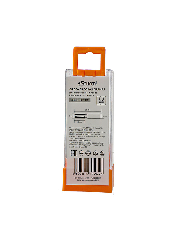 Пазовая прямая с двойным лезвием dxhxl 12x19x55 мм, хв.8 Sturm!