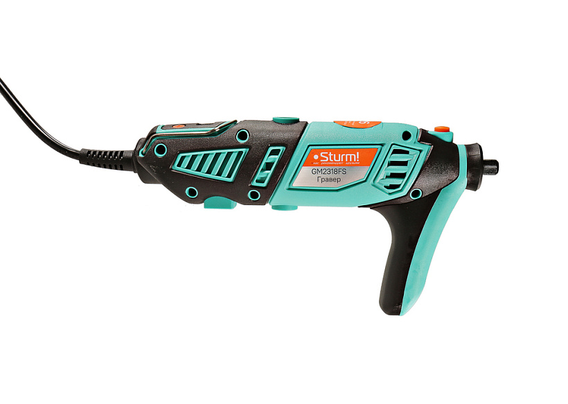 Электрический гравер Sturm GM2318FS — маневренное универсальное устройство для широкого спектра работ: резка, сверление, полирование, гравирование, шлифование, фрезерование различных материалов: металл, дерево, камень, стекло, пластмасса и т.д. Высокоточная цифровая настройка оборотов с ЖК-дисплеем позволит подобрать требуемую скорость под отдельную задачу. Также данная модель предоставляет возможность установки цанг трех различных диаметров 1,6/2,4/3,2 мм, что допускает применение большого множества отличных насадок. Для быстрой и удобной смены оснастки есть кнопка блокировки шпинделя.