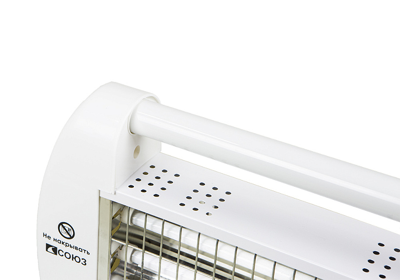 СОЮЗ КВС-1200 – кварцевый, инфракрасный обогреватель мощностью 1200 Вт —предназначен для быстрого прогрева и поддержания комфортной температуры в помещениях площадью до 30 м2, а также может использоваться на открытой местности для обогрева беседок, веранд, террас. Благодаря горизонтальной компоновке и небольшой массе, обогреватель не занимает много места — удобен в хранении и при транспортировке. Корпус прибора выполнен из специального жаропрочного пластика, что гарантирует безопасность и долговечность. Модель оснащена кварцевыми нагревательными элементами. Распространяемая тепловая энергия в виде инфракрасных волн передаются через воздух, не нагревая его и поглощается окружающими предметами: стенами, потолком, полом, мебелью, которые впоследствии, отдают тепло воздуху. Преимущество такого решения – высокая результативность обогрева, благодаря значительно меньшим потерям тепла. Кроме того, благодаря своему приятному оранжевому свечению, кварцевые нагревательные элементы способствуют созданию в помещении атмосферы уюта. Из-за отсутствия в конструкции вентилятора, модель СОЮЗ КВС-1200 является бесшумной в работе, что положительно влияет на комфорт использования. Обогреватель максимально прост в эксплуатации ¬– управление осуществляется кнопками на передней панели – с их помощью пользователь выбирает оптимальный режим работы из трех возможных: эконом / умеренный / максимальный. Безопасность работы обеспечивает датчик опрокидывания, отключающий обогреватель при его случайном падении.