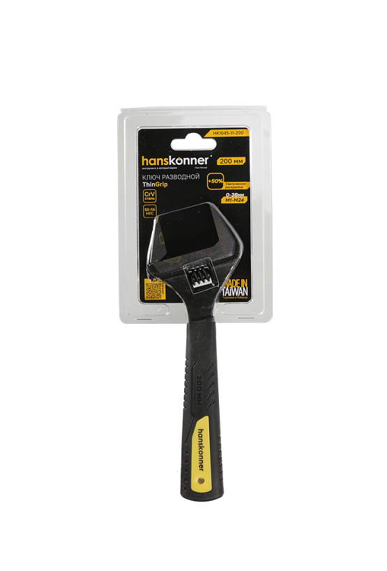 Разводной ключ с тонкими губками, 200 мм, зев 38мм, фосфатированный, hanskonner