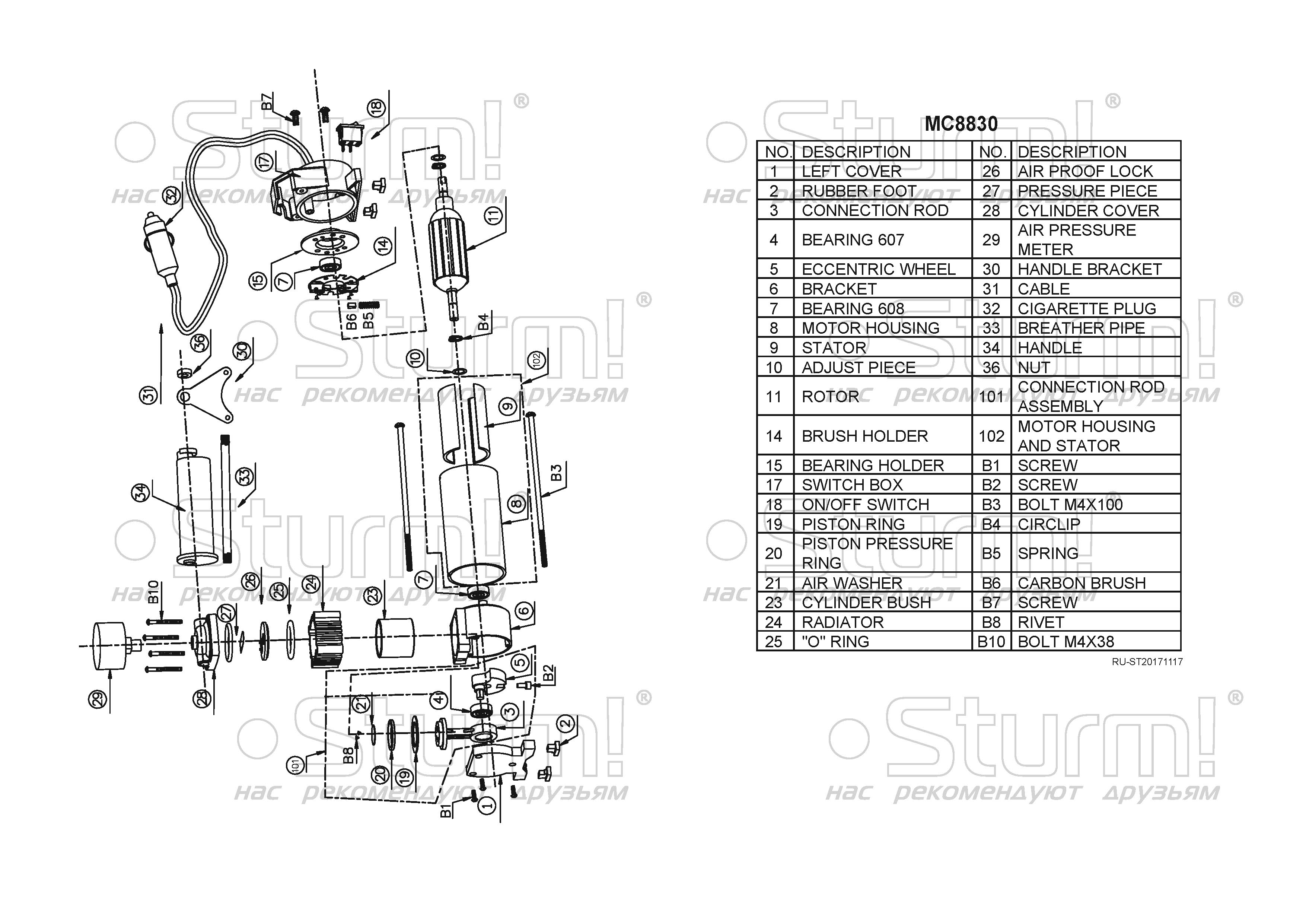 В комплект поставки входят три штуцера для накачки мячей, матрасов и других надувных изделий.