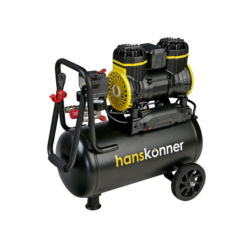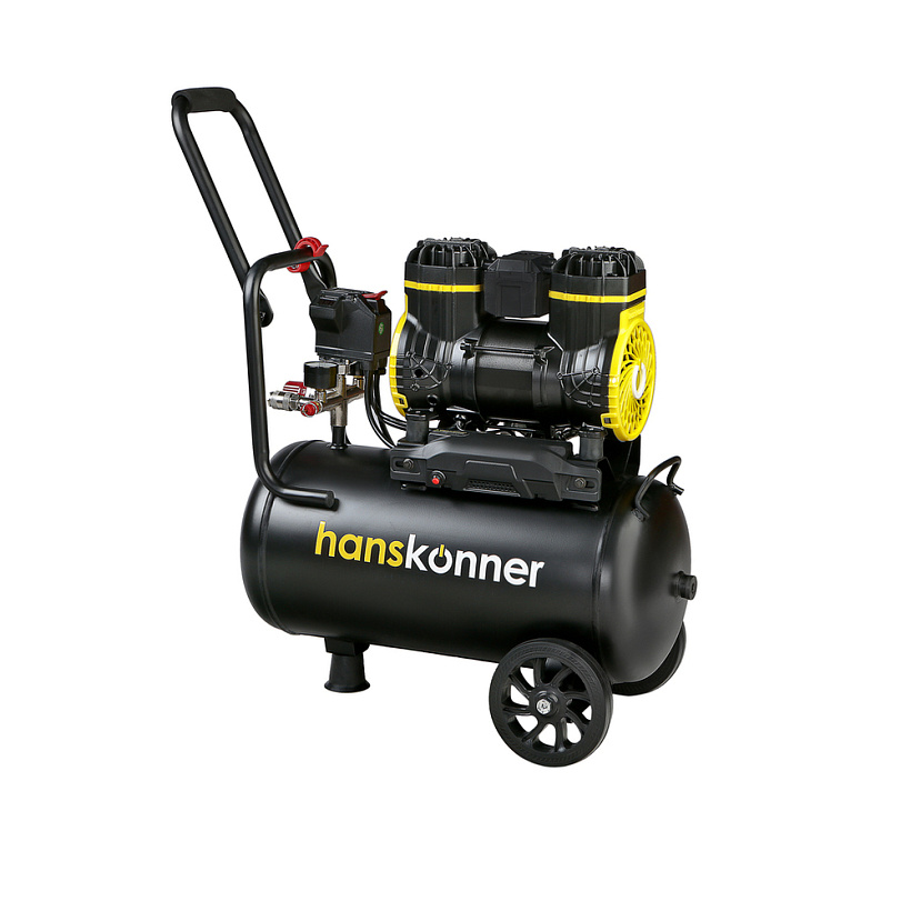 Hanskonner HAC241 - поршневой безмасляный компрессор нового поколения. Мощность данной модели составляет 1450Вт, производительность 240 л/мин, честный объем ресивера 24л., с максимальным давлением 8 бар.