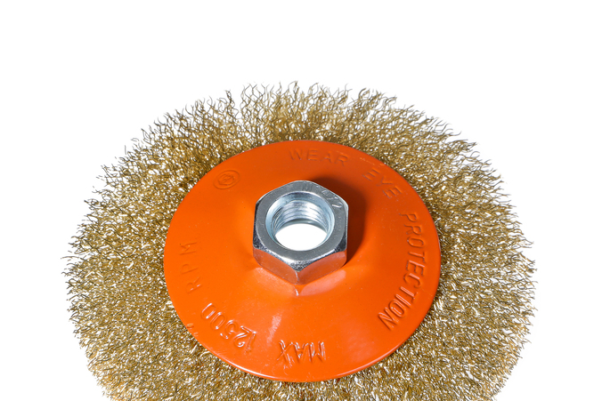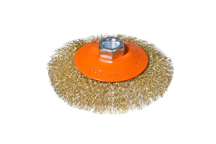 Корщетка-насадка является сменным элементом для УШМ. Применяется для зачистки от лака, краски и ржавчины различных поверхностей и изделий. Рабочая часть состоит из стальной волнистой проволоки с латунным покрытием.