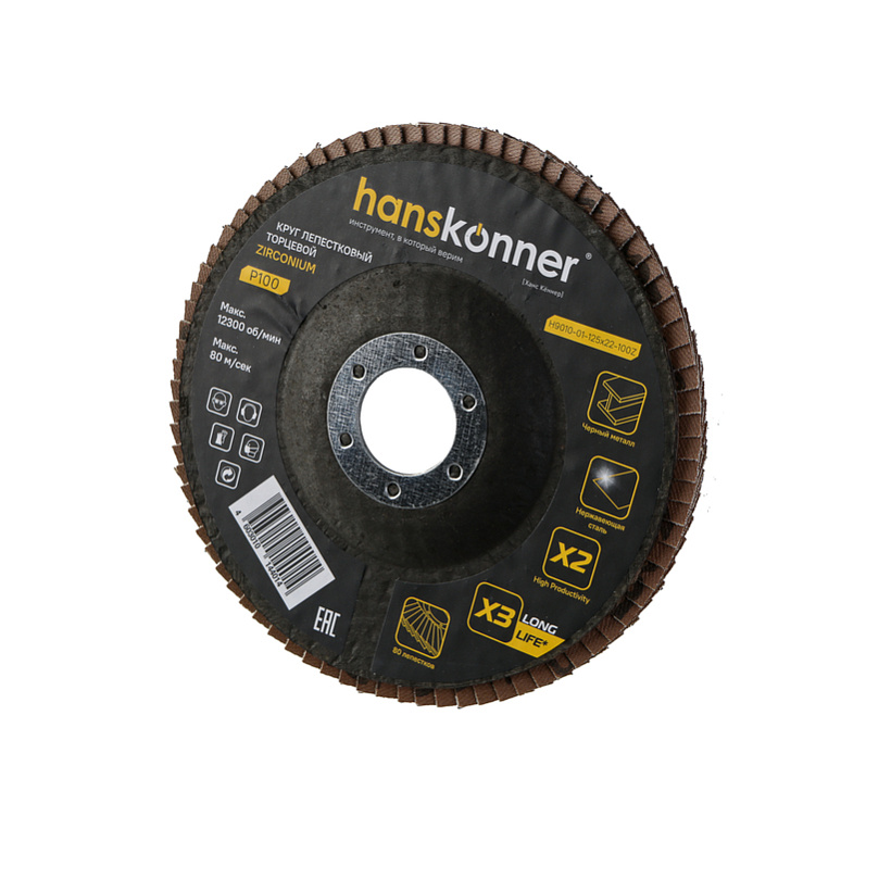 Круг зачистной лепестковый ЦИРКОНИЕВЫЙ 125х22, зерно 100, Hanskonner