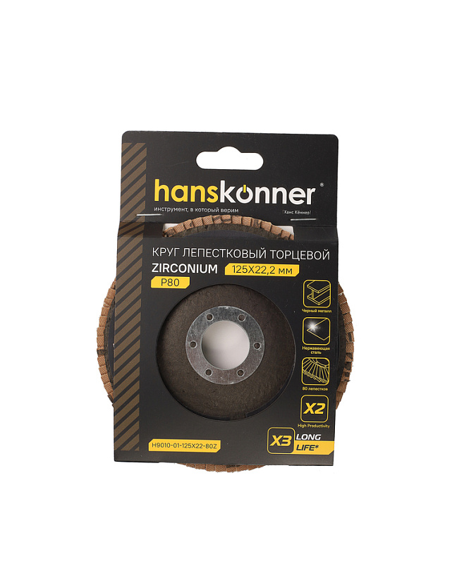 Круг зачистной лепестковый ЦИРКОНИЕВЫЙ 125х22, зерно 80, Hanskonner